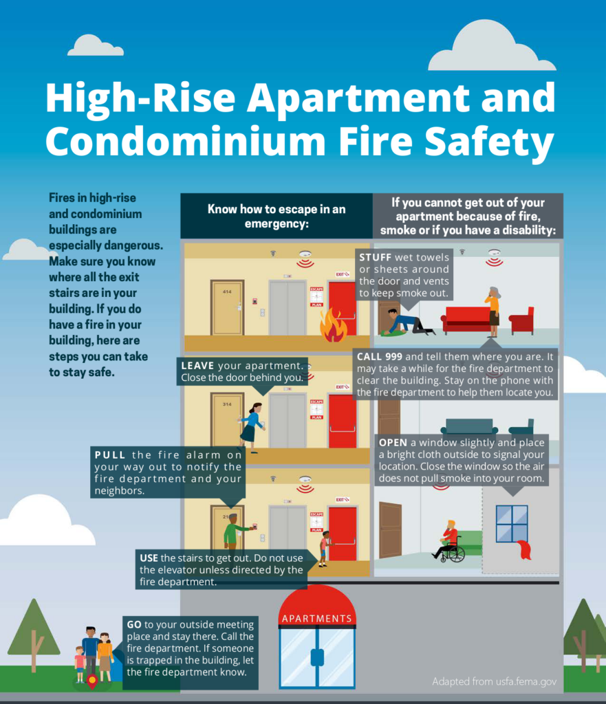 Bomba and safety experts are now promoting the “Get Out, Stay Out” protocol specifically for high-rise dwellers: